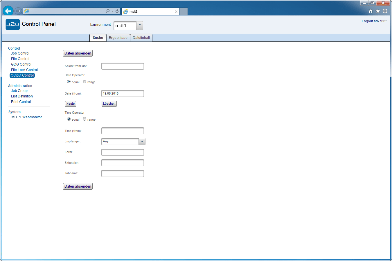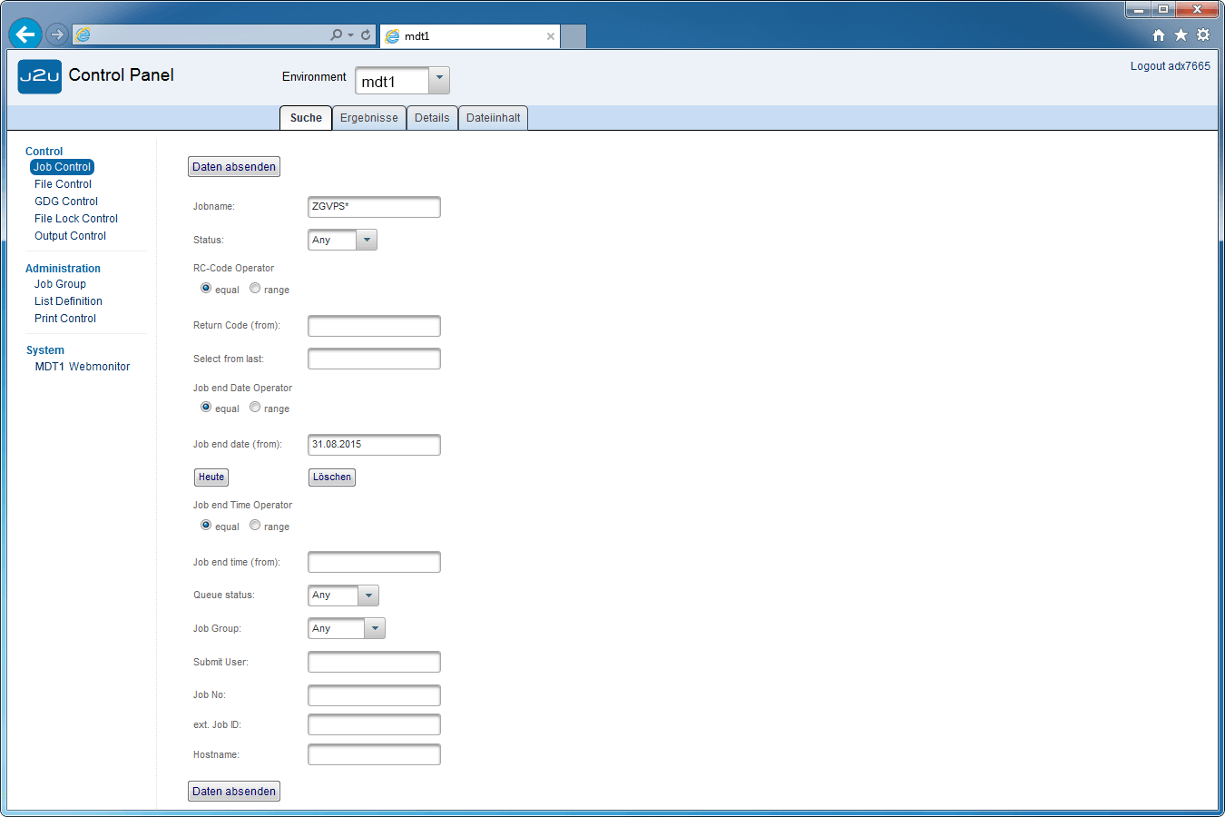 Das Job Control Panel stellt den Zugriff auf die Jobs und das Log Archiv bereit. Es enthält Funktionen zum Durchsuchen der Jobs und zur Verwaltung der Joblog-Dateien. Die integrierte Monitoring-Funktion ermöglicht die Überwachung laufender Jobs.